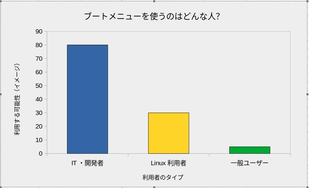 こうした人たちの間でも、 ブートメニューの使用は 日常的なものではなく、状況に応じて使うもの です。 下の図は、その違いを分かりやすく視覚的に示したものです。